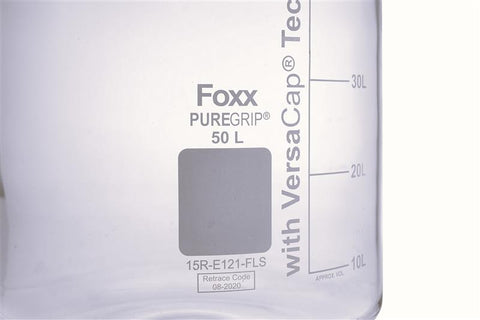Damigiana in vetro PUREGRIP® da 50 litri, rotonda con VersaCap® da 120 mm
